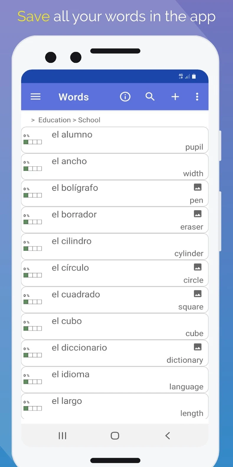 - ممكن تراجع الكلمات بطرق مبتكرة على هيئة ألعاب ومن ضمنهم Flash Cards ويحسبلك كمان النتيجة بتاعتك.